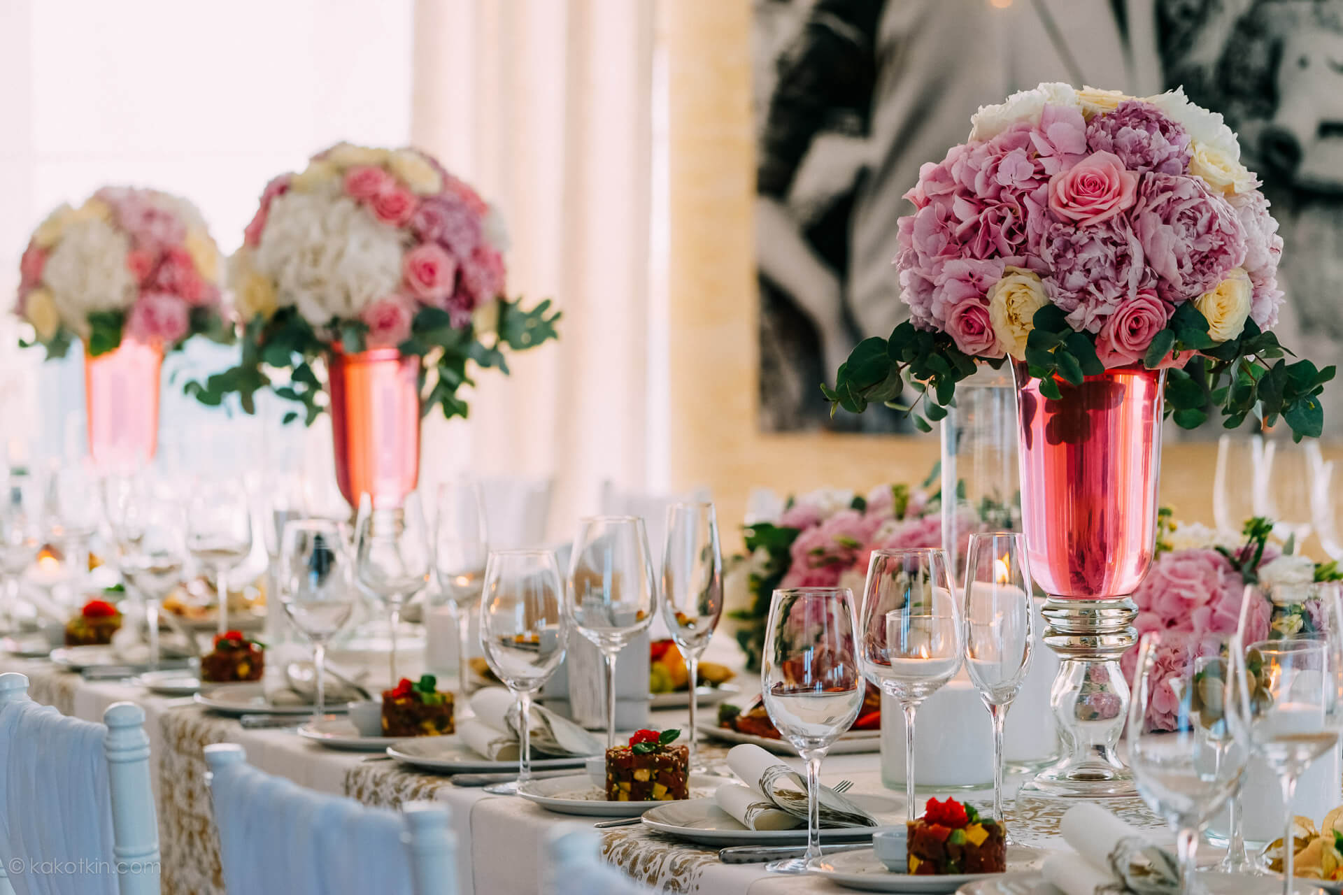 Восхитительный декор зала в этот день был организован отличной компанием "Мастерская упаковки" в Твери. "Мастерская упаковки" специализируется на декоре/оформлении мероприятий