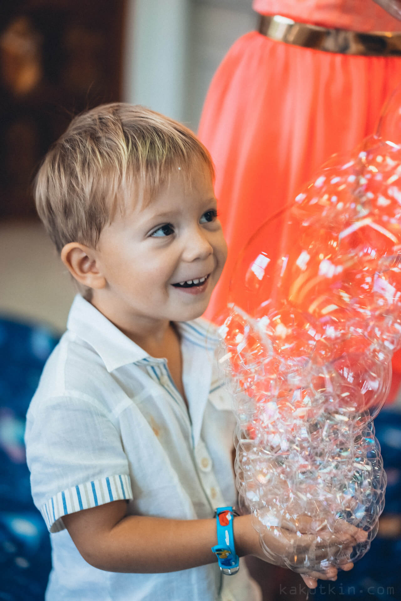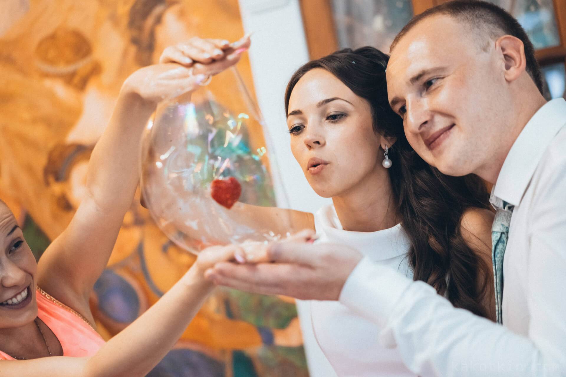 Уютный банкет в узком кругу родственников и друзей состоялся в загородном комплексе Юпитер, славящийся своей кухней, достойным обслуживанием и приятной территорией. Был выбран светлый ресторан на первом этаже. Ведущим на мероприятии был блистательный Василий Гладков. А шоу мыльных пузырей представила Анна Черемных.